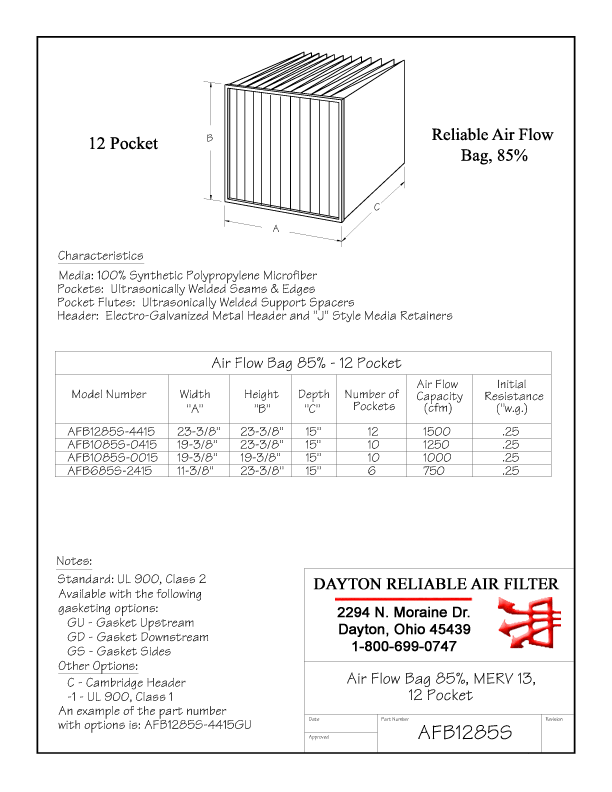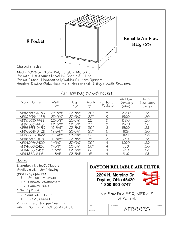Rigid construction, extended surface, long service life and savings in energy costs are features and benefits which make our bag filter an excellent option for meeting the requirements of medium to high efficiency filtration. Also available in MERV 12, 13, and 14 efficiencies per ASHRAE 52.1.