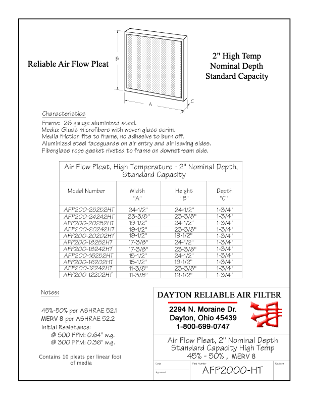 A heavy-duty aluminized steel is utilized as an encasing frame. No glue is used in this product. Maximum operating temperature up to 300 degrees Fahrenheit. This filter is U.L. classified.